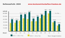 Über eine halbe Million Seitenzugriffe (602,8 Tsd.) addierte Google im vergangenen Jahr für unser Such- und Informationsportal: www.heckenwirtschaften-franken.de. Dieser hohe Zuspruch verdeutlicht das ausgeprägte Interesse der User an diesem Portalangebot.