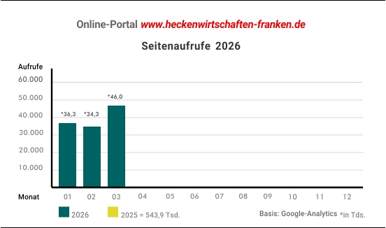 Über eine halbe Million Seitenzugriffe (543,9 Tsd.) addierte Google im vergangenen Jahr für unser Such- und Informationsportal: www.heckenwirtschaften-franken.de. Dieser hohe Zuspruch verdeutlicht das ausgeprägte Interesse der User an diesem Portalangebot.